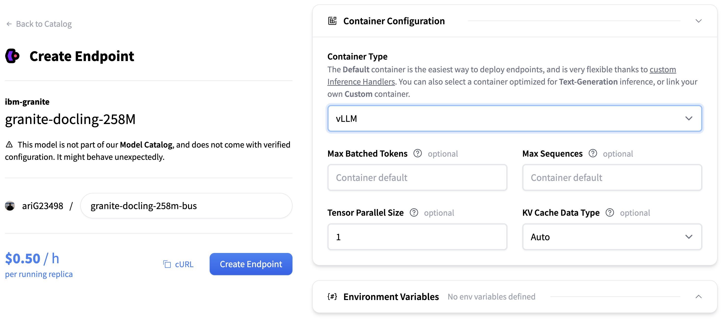 该目录提供了针对 vLLM 优化的模型,包括 GPU 设置和推理引擎配置。您可以从推理端点 UI 监控端点并更新 容器或其配置。